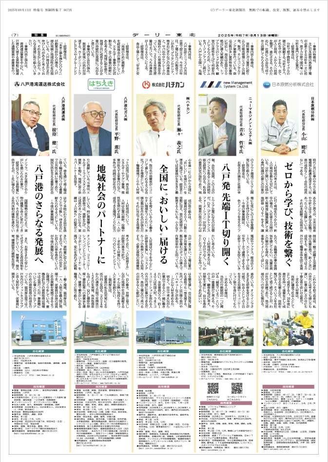 2025年8月19日 デーリー東北 掲載情報 お知らせ掲載情報 2025年8月13日号の「デーリー東北/経営トップインタビュー特集」に、弊社代表取締役社長 青木哲平のインタビュー記事が掲載されました。 ※デーリー東北 様提供